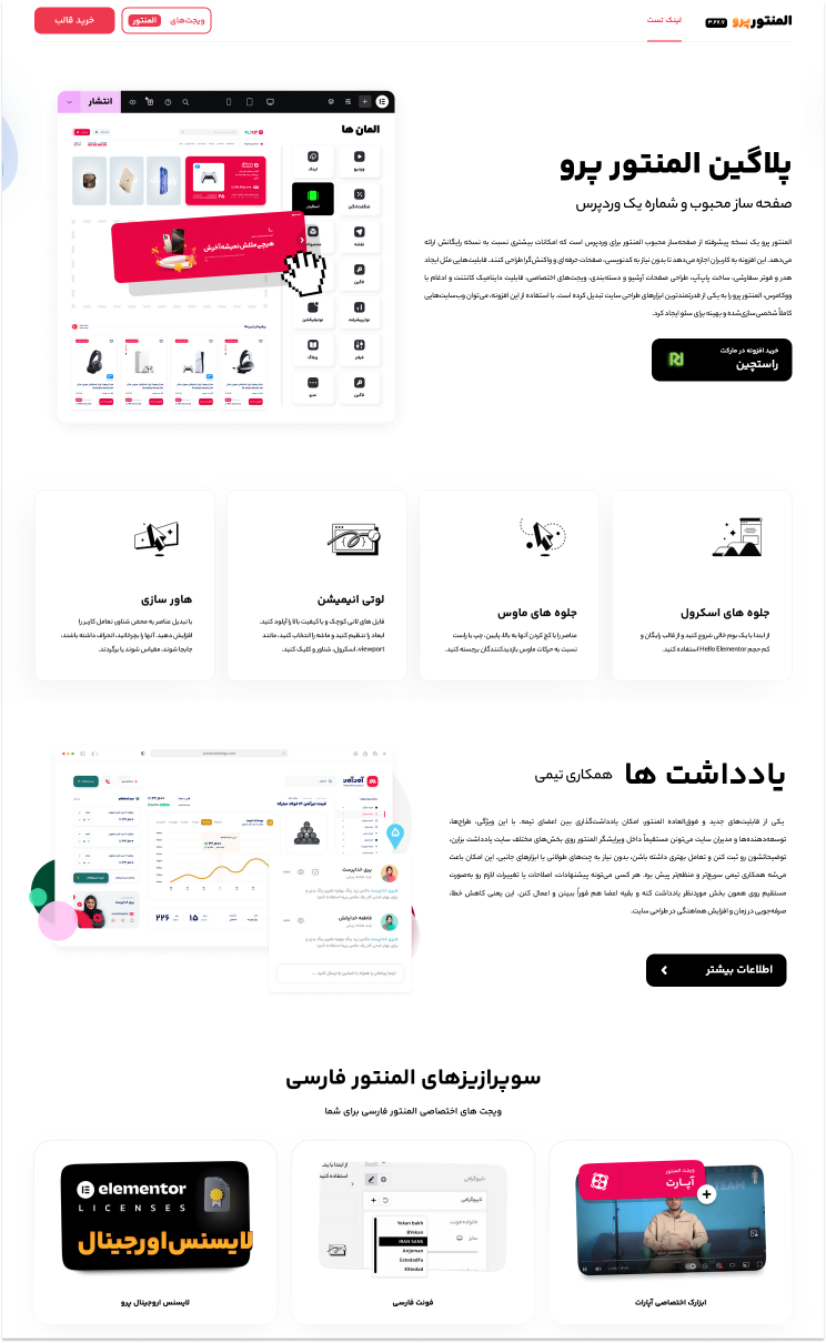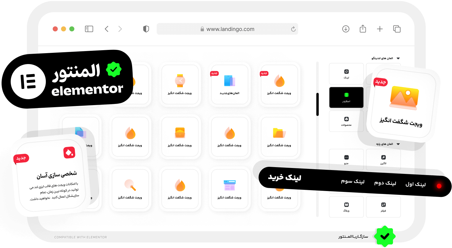 بله ، کلیه المان هایی که در همین صفحه مشاهده میکنید المنتوری است و به راحتی می توانید ویرایش ، سفارشی سازی ، اضافه ، حذف و جابجا کنید . المنتور افزونه محبوب ای است که بر روی قالب لندینگو وجود دارد و نیازی نیست به صورت مجزا تهیه کنید و نسخه پرو نیز بر روی این قالب وجود دارد و نیازی به خرید مجزا این پلاگین نیست .